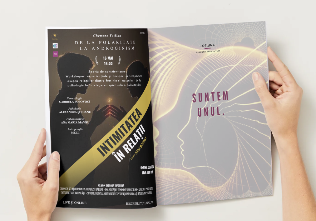 Există o întrebare care traversează toate relațiile, indiferent de forma lor: cum poate intimitatea să devină un spațiu de întâlnire reală — nu de confuzie, de dependență sau de luptă pentru putere? Chemare TotUna propune, pentru prima oară, o explorare multidimensională a acestei teme, reunind perspective din numerologie, psihologie, psihosomatică și antroposofie.