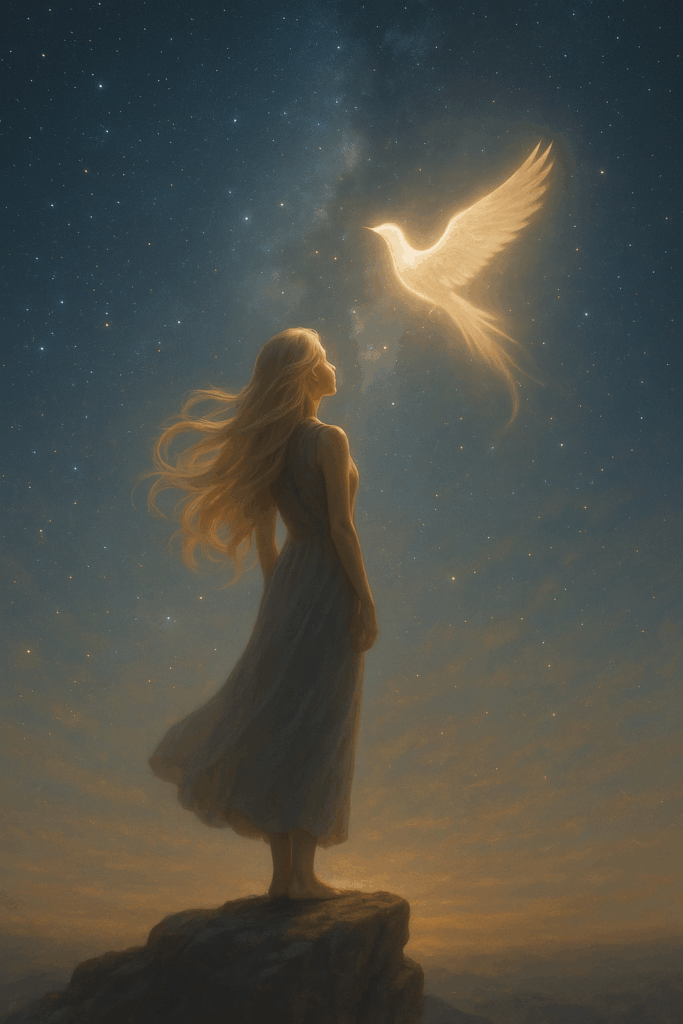 Această creație nu este doar o confesiune poetică, ci un proces de alchimie interioară. Prin fiecare dorință eliberată, autoarea se apropie de o revelație esențială: pacea nu se află în exterior, iubirea nu este de găsit în altcineva, ci ambele sunt deja prezente în sinele autentic. Metaforele oglindirii între mare și cer, cununa de aștri și îmbrățișarea Lunii conturează o viziune cosmică asupra existenței, în care omul nu este separat de univers, ci una cu el.
